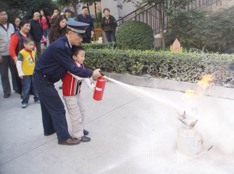 一年一度的“119”即将来,为了广泛普及宣传消防知识及灭火器材使用,勤信物业公司于2008116日,在梦追湾公馆、金城小区、建川商厦组织了一次冬季消防活动,邀请到社区领导、业委会主任、业主代表及部份商家参与。勤信物业请来市防火办老师针对普遍存在的火灾防范意识薄弱的问题,通过一个个触目惊心的火灾现场案例,为我们敲响警钟,讲解了基本预防措施及逃生技巧。生动的讲解不但牵动着在场人员,也吸引了多位路过的业主。一位业主深有感触的说道:“火灾猛于虎啊!我平时就在拔插头、长时间讲手机等小细节上很不注意,多亏老师给我提了个醒,我回去要好好检查一下,这也是为家人负责啊!”