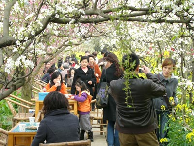 在龙泉天府梨园,成千上万株雪白的梨花、李花,粉红的桃花、火红的海棠花惊艳绽放的盛景;一旁的人工湖,湖水澄清,波光粼粼,湖光花影,相映成趣,让人宛如置身花的海洋,在明媚春光中,花的海洋里品茗、娱乐,在轻松愉悦的氛围里享受娱乐竞技的无穷乐趣。
