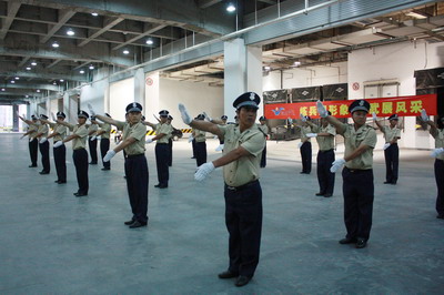 2011729日下午3点半,伴随着雄壮的军乐曲,成都忠信物业2011年度秩序维护岗位练兵活动在大合仓项目拉开了帷幕。由成都各项目抽调精干人员组成的四个方队,迈着整齐的步伐进入场地。队员们个个气质昂扬、精神抖擞,正步走过主席台,向公司各级领导及来宾敬礼、汇报表演。公司及分公司领导、各项目负责人以及青海大通新宇物业管理公司的朋友们也一起观摩了汇报演练。