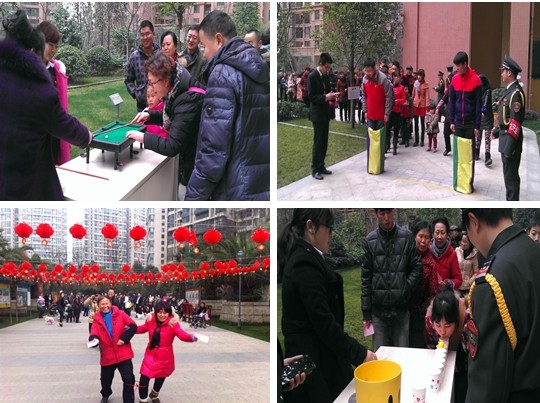 2014 年2月14日,佳兆业物业在丽晶港、华阳君汇上品开展了“幸福佳生活、欢乐过元宵”主题活动。活动现场,热闹非凡。袋鼠跳、超级保龄球、迷你高尔夫、夹弹珠等趣味游戏引得业主踊跃参与。主题活动营造出浓厚的传统节日氛围,有效促进了社区业主之间良好的邻里关系,进一步增强了业主与物业的情感。