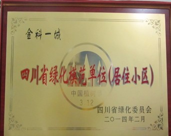 2014年3月8日,四川省绿化委员会下发了《关于表彰四川省森林城市、绿化模范县、绿化模范单位、绿化示范村的决定》,重庆市金科物业服务有限公司成都分公司管理项目“金科一城”为此次全省表彰“四川省绿化模范单位”唯一一个住宅小区。