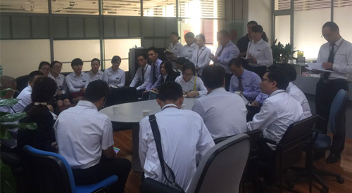 5月10日,恒大地产金碧物业四川分公司项目总经理付述全,带领成都片区35名项目经理及专业主管,到民兴物业四川建行大厦物业项目座谈交流。