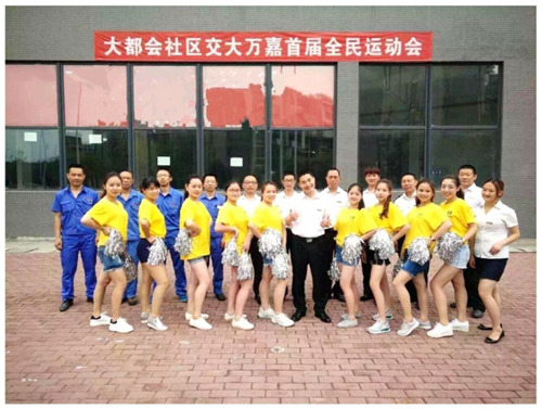 5月21日早上8:00,工作人员全部到场就位。项目邀请的大都会社区主任及棠蓉园业主委员会的老师也到场助阵,各位参赛业主也陆续抵达。9:00运动会开幕式正式开始,主持人首先介绍了到场嘉宾、比赛项目以及本次参赛的方队:棠蓉园代表队、蓉杏园代表队、兰枫园代表队、樟菊园代表队、季柳园代表队。社区领导及棠蓉园业委会主任受邀讲话;运动员和裁判员宣宣读了宣誓词。伴随着项目客服人员的“啦啦操”,项目经理李德勤正式宣布:交大万嘉首届全民运动会正式开幕!