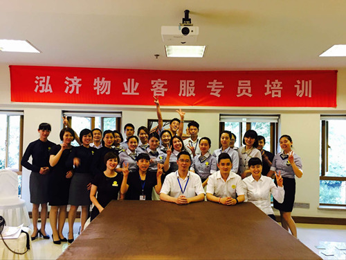 为提高泓济物业服务从业人员的专业价值自信、职业价值自信、社会价值自信,2017年5月,开展了以幸福年为主题的客服人员跨区域一级培训,九个分公司,近百名客服人员参加。