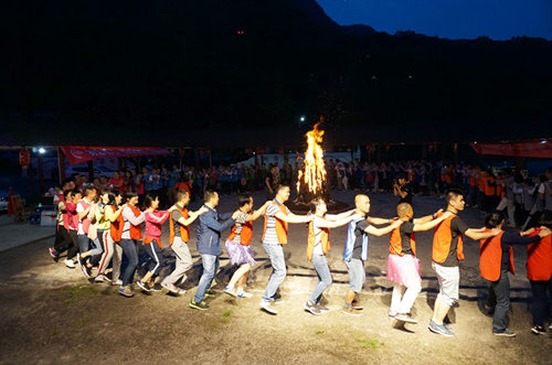 17日10点至18点,开展了“鼓动人心、奔跑定向”的拓展活动。将员工分成多个小组,各组团队相互协作、相互配合,均以出色的成绩顺利完成任务。拓展活动结束后,18点至19点30分,进入厨艺大比拼。各组合理分工,洗菜、切菜、炒菜、摆盘,进行得有声有色。晚饭后,点燃篝火,跳起锅庄,尽享都江堰之夜。
