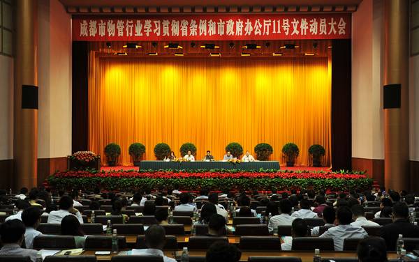 201268,全市物管行业深入学习贯彻省条例和市政府办公厅11号文件动员大会在成都金牛宾馆召开。四川省住房和城乡建设厅房地产业处副处长黄兴华,成都市城乡房产管理局副局长宋学明、物业管理处处长袁庆华,成都市物业管理协会会长闻涛出席会议,全市800余名物业服务机构代表参加了会议。会议由巫庆敏秘书长主持。