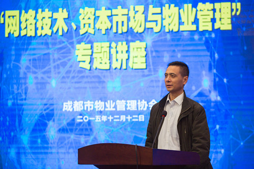12月12日上午,住房和城乡建设部房地产市场监管司物业服务市场监管处处长陈伟莅临成都作了“网络技术、资本市场与物业管理”专题讲座。成都天府国际金融中心会场座无虚席,400余名物业服务企业高层管理人员聆听了讲座。