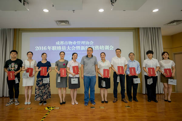 9月2日下午,成都市物业管理协会在房产分中心三楼多功能会议室召开2016年联络员大会暨新闻宣传培训会,对30位获得2016年“优秀联络员”称号的同志进行了表彰,并开展了媒体公关、新闻写作和摄影培训。成都市城乡房产管理局物业管理处副处长姜鲁东、新闻宣传办公室主任胡建华应邀出席会议并讲话。协会会长闻涛、常务副会长兼秘书长巫庆敏出席会议,200余家会员单位的联络员参加了会议。会议由协会副秘书长苟强主持。