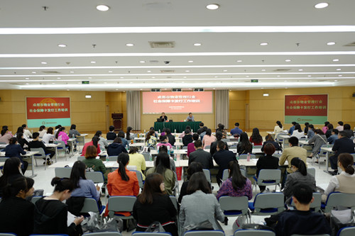 4月27日上午,成都市物业管理协会在房产分中心三楼多功能会议厅举办社会保障卡发行工作培训。此次培训得到了市人社局的大力支持和指导,市人社局信息处邹平处长、信息中心(卡务中心)谭明波科长到会就社会保障相关政策、社会保障卡发行工作进行了培训,并对物业管理行业共同关注的劳动就业、社会保障、人才服务等热点问题进行了讲解。近200名物业服务企业代表参加培训。